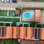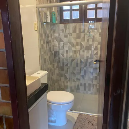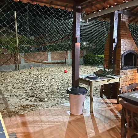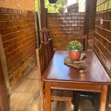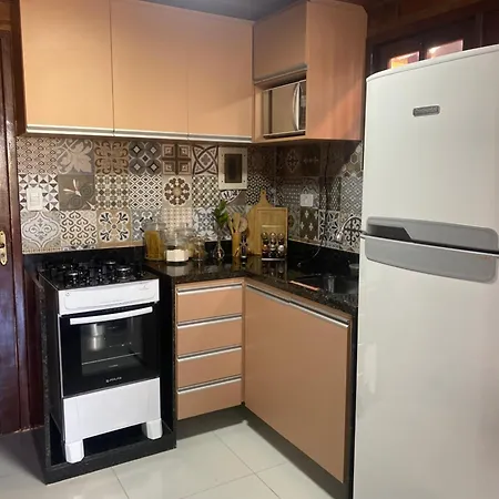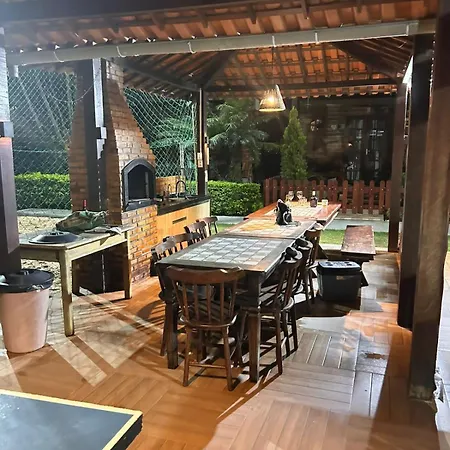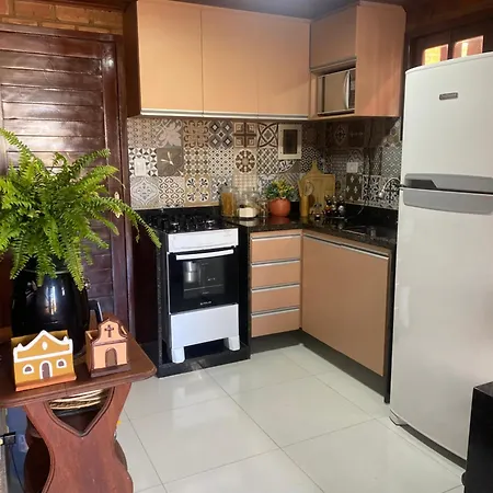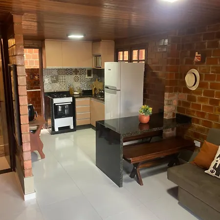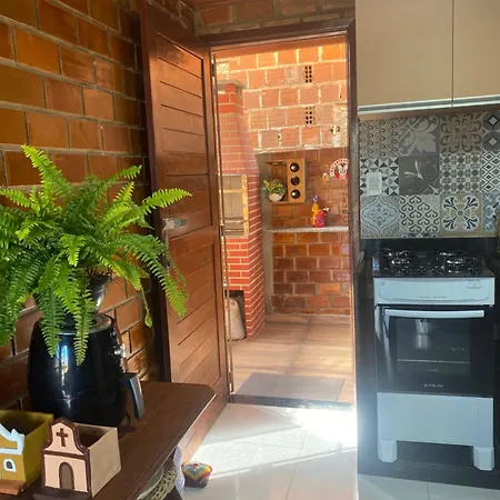 Im Chalet in Gravatá stehen Gästen eine Küche sowie ein Essbereich im Freien zur Verfügung. Es gibt auch einen Herd in der Küche.