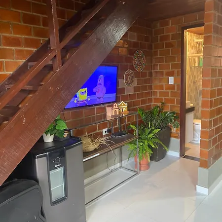 Die Villa Chale Monterrey 03 Gravatá befindet sich in rund 10 Autominuten Entfernung von der Alto do Cruzeiro Aussichtsplattform und verfügt über eine Terrasse.